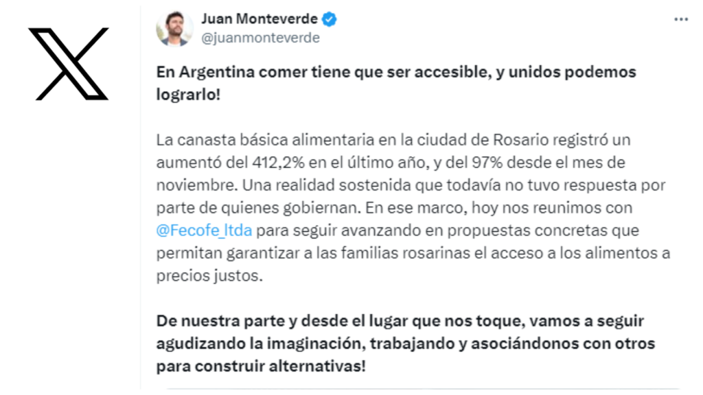 “Vamos a construir juntos”, sostuvo el concejal y ex candidato a intendente de Rosario, Juan Monteverde, quien más tarde mostró datos contundentes del excesivo aumento del precio de los alimentos en la ciudad.