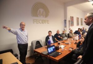 El pasado jueves 28, la Federación de Cooperativas Federadas (FECOFE) recibió la visita del secretario de Alimentos, Bioeconomía y Desarrollo Regional de la Nación, Luis Contigiani, y del asesor Paulo Ares para la presentación del Plan de Desarrollo Cooperativo Agroindustrial y Agroalimentario del Ministerio de Agricultura, Ganadería y Pesca.