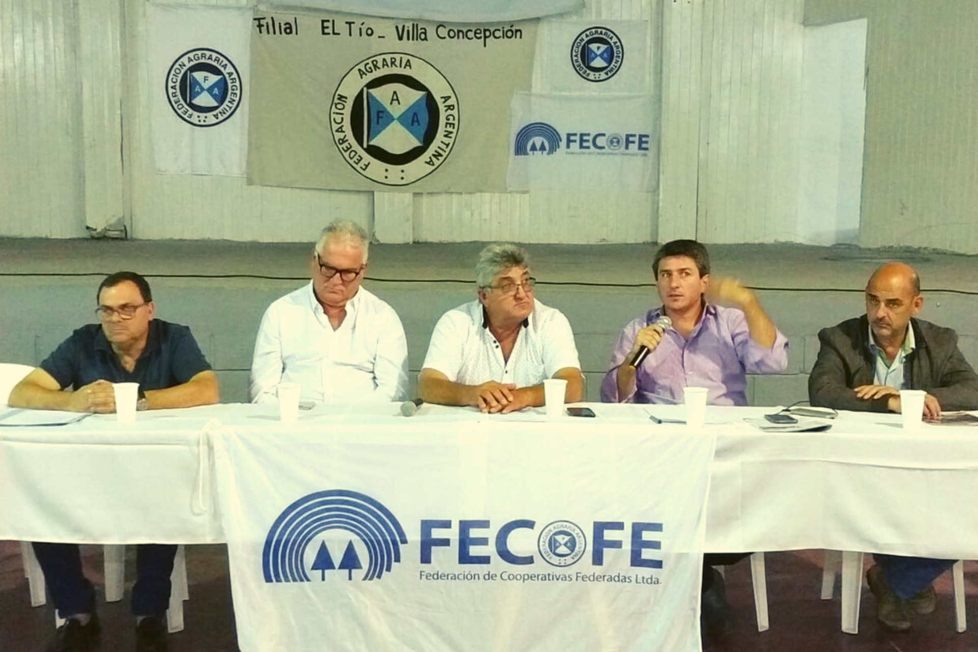 La asamblea fue conducida por el titular de la Federación Agraria Córdoba, Agustín Pizzichini, el presidente de FECOFE, Juan Manuel Rossi, el Vicepresidente de FAA, Elvio Guía, y el presidente y el gerente de la Cooperativa Las Cañitas, Juan Domingo Sola y Pablo González, respectivamente.