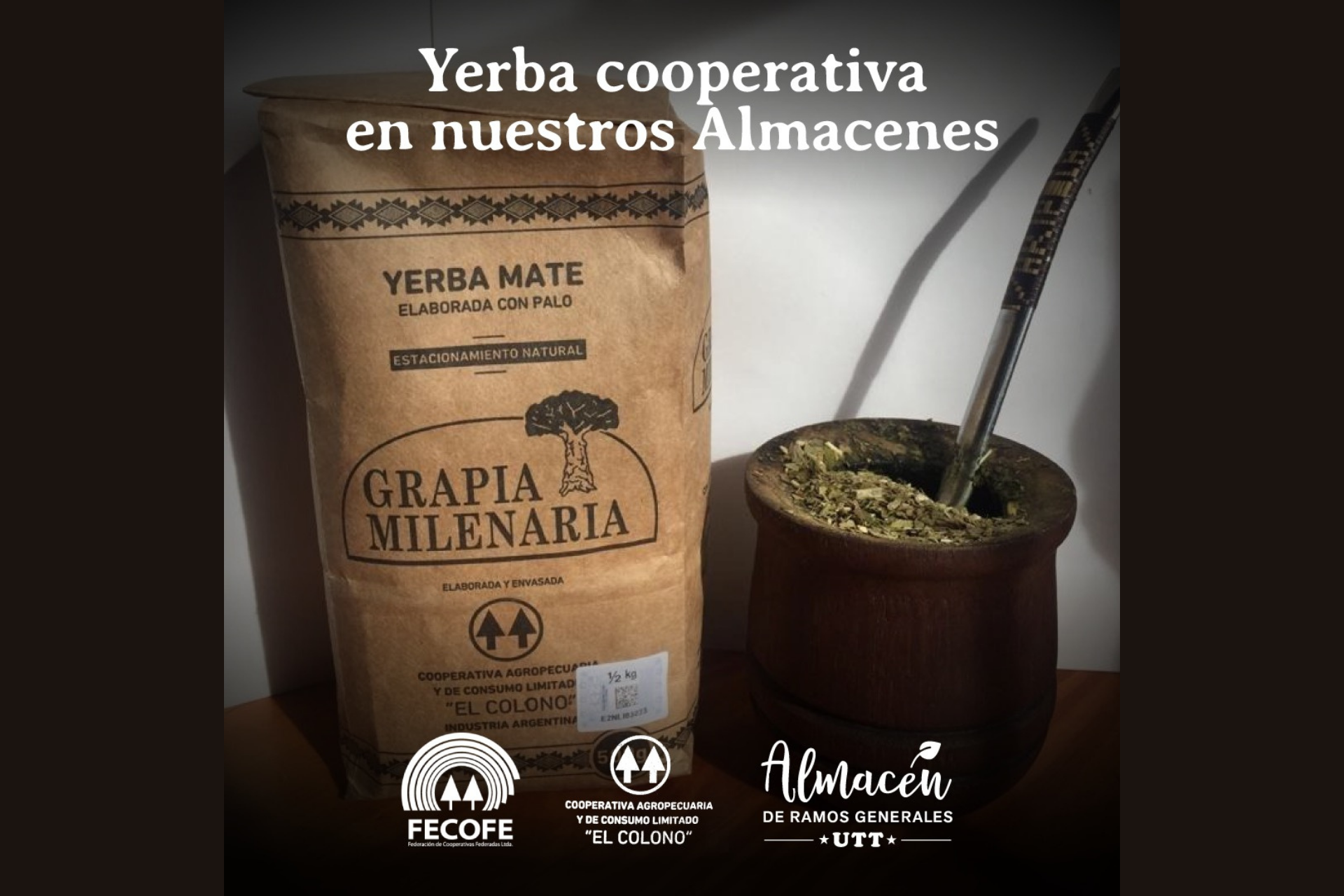Sumada a los productos lácteos de las cooperativas tamberas de James Craik y Cotar, desde la última semana ya se puede encontrar en los almacenes que la Unión de Trabajadores de la Tierra (UTT) posee en Buenos Aires, la yerba elaborada por la Cooperativa Agropecuaria y de Consumo Limitada “El Colono”, de Campo Ramón, provincia de Misiones. El primer envío consistió en una tonelada de yerba mate de su reconocida marca “Grapia Milenaria”.