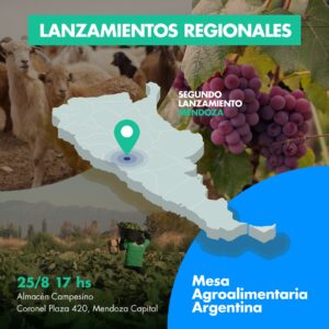 Las organizaciones integrantes del llamado “otro campo” lanzarán este miércoles 25 de agosto a las 17 horas la regional Mendoza de la flamante Mesa Agroalimentaria Argentina. La Unión de Trabajadores y Trabajadoras de la Tierra (UTT), el Movimiento Nacional Campesino Indígena Somos Tierra (MNCI ST) y la Federación de Cooperativas Federadas (FECOFE), organizaciones impulsoras de la Mesa, anunciaron la conformación de regionales de la entidad en todo el país. El acto del segundo lanzamiento regional se realizará en el Local del Almacén Campesino ubicado en Coronel plaza 420 de la ciudad de Mendoza.
