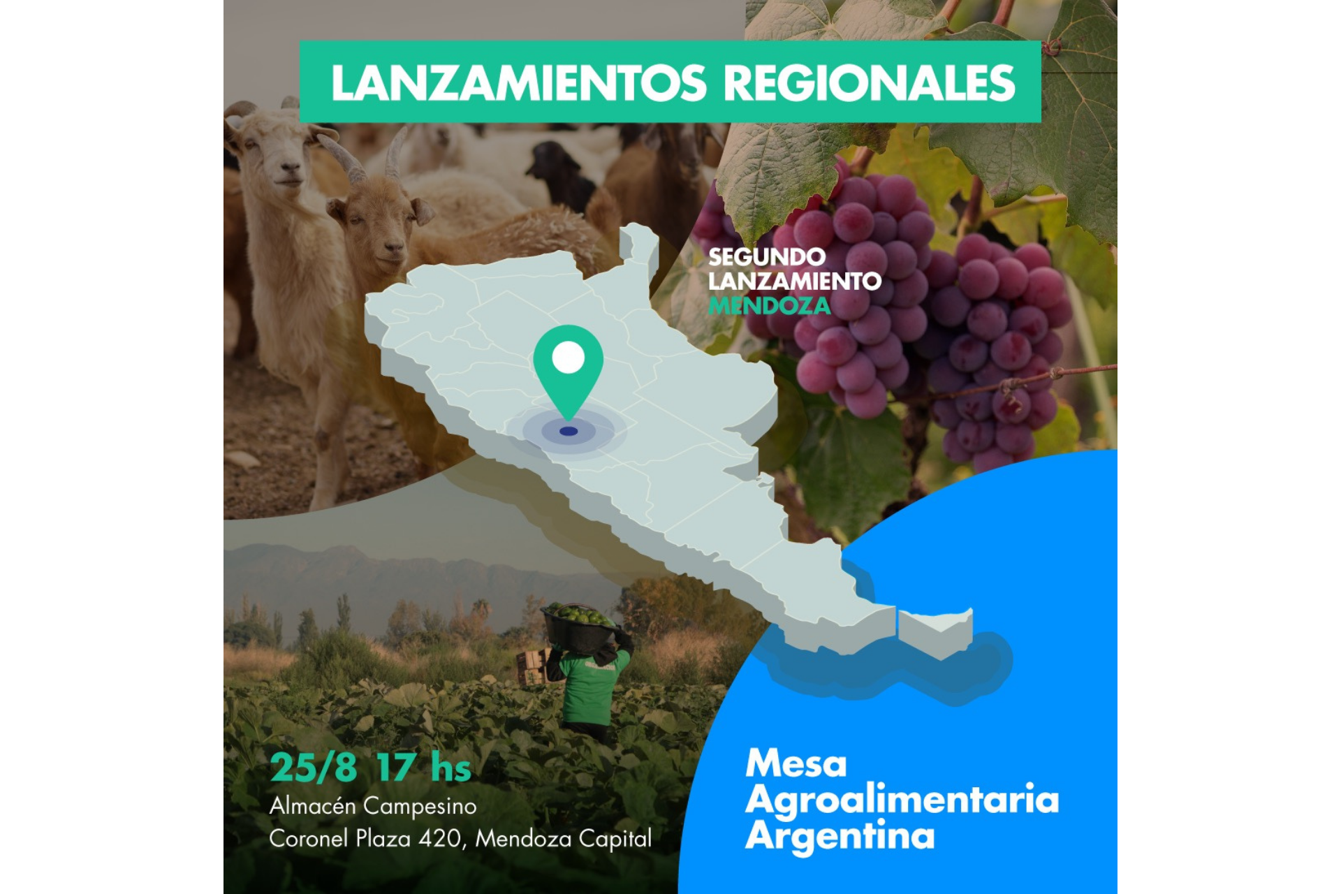 Las organizaciones integrantes del llamado “otro campo” lanzarán este miércoles 25 de agosto a las 17 horas la regional Mendoza de la flamante Mesa Agroalimentaria Argentina. La Unión de Trabajadores y Trabajadoras de la Tierra (UTT), el Movimiento Nacional Campesino Indígena Somos Tierra (MNCI ST) y la Federación de Cooperativas Federadas (FECOFE), organizaciones impulsoras de la Mesa, anunciaron la conformación de regionales de la entidad en todo el país. El acto del segundo lanzamiento regional se realizará en el Local del Almacén Campesino ubicado en Coronel plaza 420 de la ciudad de Mendoza.