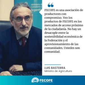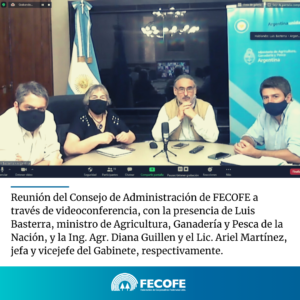 Hoy se realizó la reunión del Consejo de Administración de FECOFE con la presencia de Luis Basterra, quien está a cargo del Ministerio de Agricultura, Ganadería y Pesca de la Nación Argentina, y la Ing. Agr. Diana Guillen y el Lic. Ariel Martínez, jefa y vicejefe del Gabinete, respectivamente, acompañando a nuestro presidente Juan Manuel Rossi.